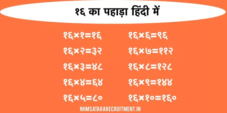 १६ का पहाड़ा हिंदी में | 16 Ka Pahada In Hindi | Multiplication Table of 16 | पहाड़ा एक गणितीय सूची है जिसे प्रायः छोटी कक्षाओं के बच्चों को अच्छी तरह से याद करा दिया जाता है। जैसे की आप सब जानते हैं कि गणित की केलकयुलेशन में पहाड़ों का कितना महत्व है। गुना एवं भाग की अंकगणित क्रियाओं का करने के बाद इसका निर्माण व उपयोग किया जाता है। वैसे यदि किसी को भी १ से ९ तक भी पहाडे याद हो तो पर्याप्त है लेकिन गणितीय तथ्थो को तेज़ी से हल करने के लिए आप सभी ज़्यादा से ज़्यादा पहाडे याद करे।