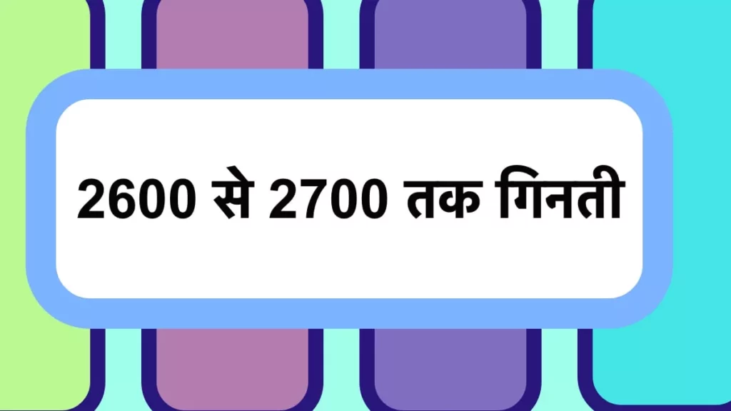 2600 से 2700 तक गिनती हिंदी में | 2600 se 2700 tak Ginti Hindi Mein | नमस्कार दोस्तों, आज के इस लेख में हम हिन्दी में गिनती के बारे में जानकारी प्रदान करेंगे। एक भाषा के रूप में हिंदी न सिर्फ़ भारत की पहचान है बल्कि यह हमारे जीवन मूल्यों, संस्कृति ओर संस्कारों की सच्ची संवाहक और परिचायक भी है। बहुत सरल, सहज ओर सुगम भाषा होने के साथ हिंदी विश्व की संभवतःसबसे वैज्ञानिक भाषा है। हिंदी विश्व स्तर पर एक प्रभावशाली भाषा बनकर उभरी है। और जितना अधिक हम हिंदी और प्रांतीय भाषाओं का प्रयोग शिक्षा, ज्ञान, विज्ञान प्रौद्योगिकी आदि में करेंगे, उतना ही तेज़ गति से भारत का विकास होगा हिंदी पुरातन भी है और आधुनिक भी बच्चों के समुचित विकास के लिए मातृभाषा की जानकारी होना अनिवार्य होता है।