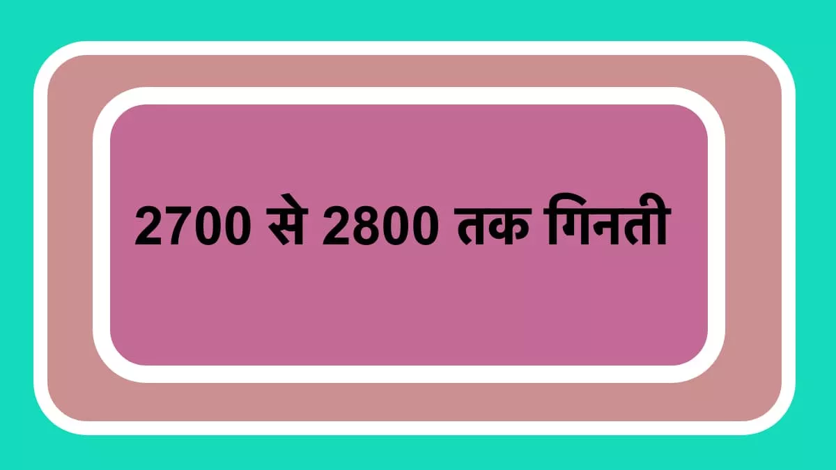 2700 से 2800 तक गिनती हिंदी में | 2700 se 2800 tak Ginti Hindi Mein | नमस्कार दोस्तों, आज के इस लेख में हम हिन्दी में गिनती के बारे में जानकारी प्रदान करेंगे। एक भाषा के रूप में हिंदी न सिर्फ़ भारत की पहचान है बल्कि यह हमारे जीवन मूल्यों, संस्कृति ओर संस्कारों की सच्ची संवाहक और परिचायक भी है। बहुत सरल, सहज ओर सुगम भाषा होने के साथ हिंदी विश्व की संभवतःसबसे वैज्ञानिक भाषा है। हिंदी विश्व स्तर पर एक प्रभावशाली भाषा बनकर उभरी है। और जितना अधिक हम हिंदी और प्रांतीय भाषाओं का प्रयोग शिक्षा, ज्ञान, विज्ञान प्रौद्योगिकी आदि में करेंगे, उतना ही तेज़ गति से भारत का विकास होगा हिंदी पुरातन भी है और आधुनिक भी बच्चों के समुचित विकास के लिए मातृभाषा की जानकारी होना अनिवार्य होता है।