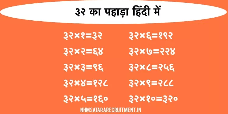 ३२ का पहाड़ा हिंदी में