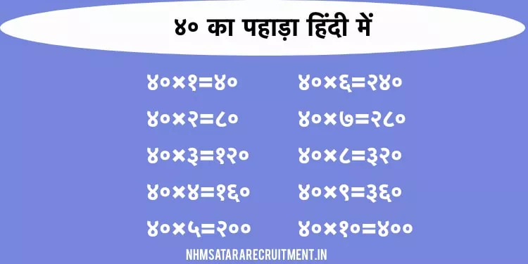 ४० का पहाड़ा हिंदी में