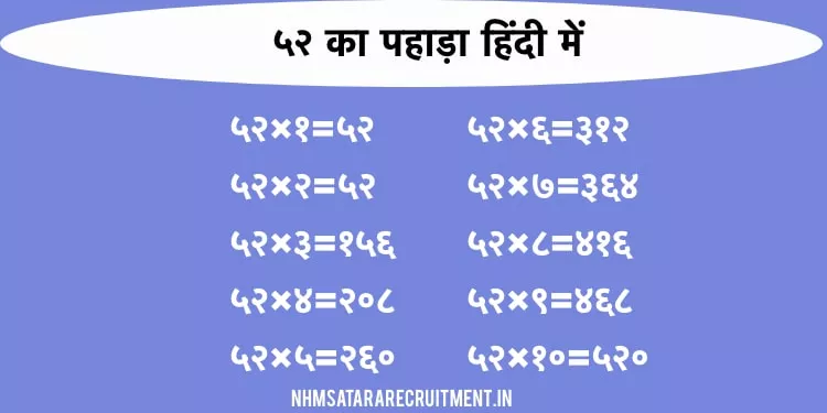 ५२ का पहाड़ा हिंदी में
