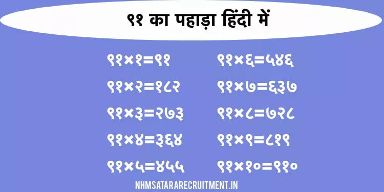 ९१ का पहाड़ा हिंदी में | 91 Ka Pahada In Hindi | Multiplication Table of 91