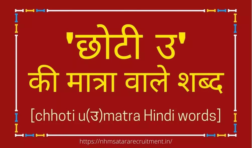 तो आइए देखते हैं ऐसे ही छोटी ‘उ’ की मात्रा वाले शब्द Chhoti u matra Hindi words के बारे में विस्तार से।