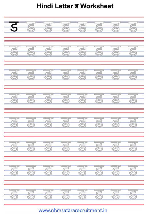- छोटी उ की मात्रा वाले शब्द की Worksheet In Hindi